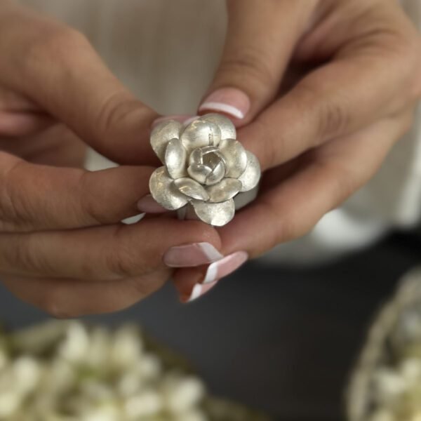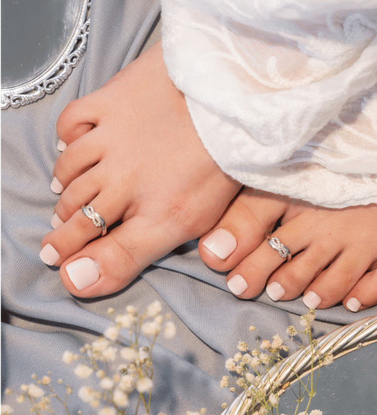 The Blush Petal Silver Foot Band captures the delicate essence of a blooming flower — soft, graceful, and full of quiet beauty. Meticulously handcrafted in sterling silver, this piece draws inspiration from floral adornments traditionally worn by Indian women as a symbol of elegance and femininity. Its subtle petal-inspired contours lend a refined charm, bridging the gap between timeless tradition and modern sophistication.