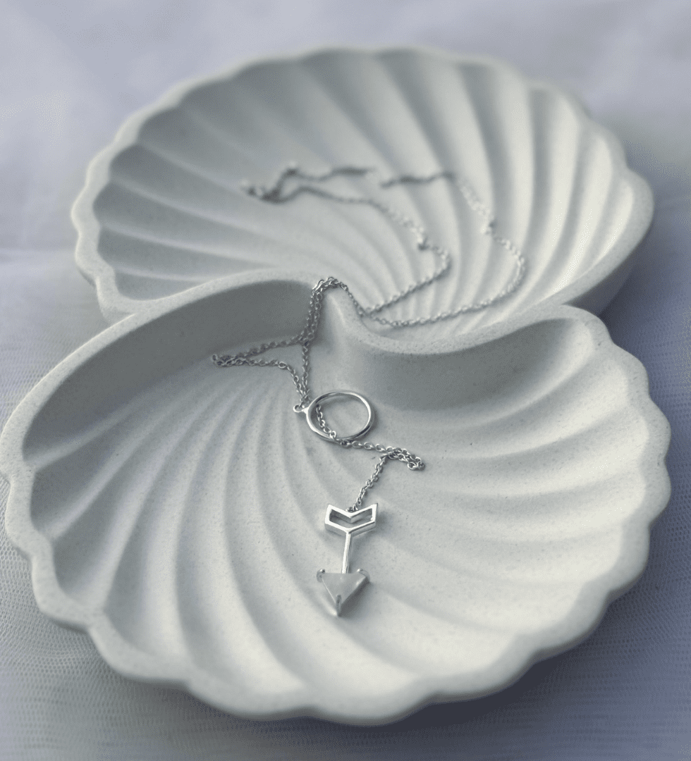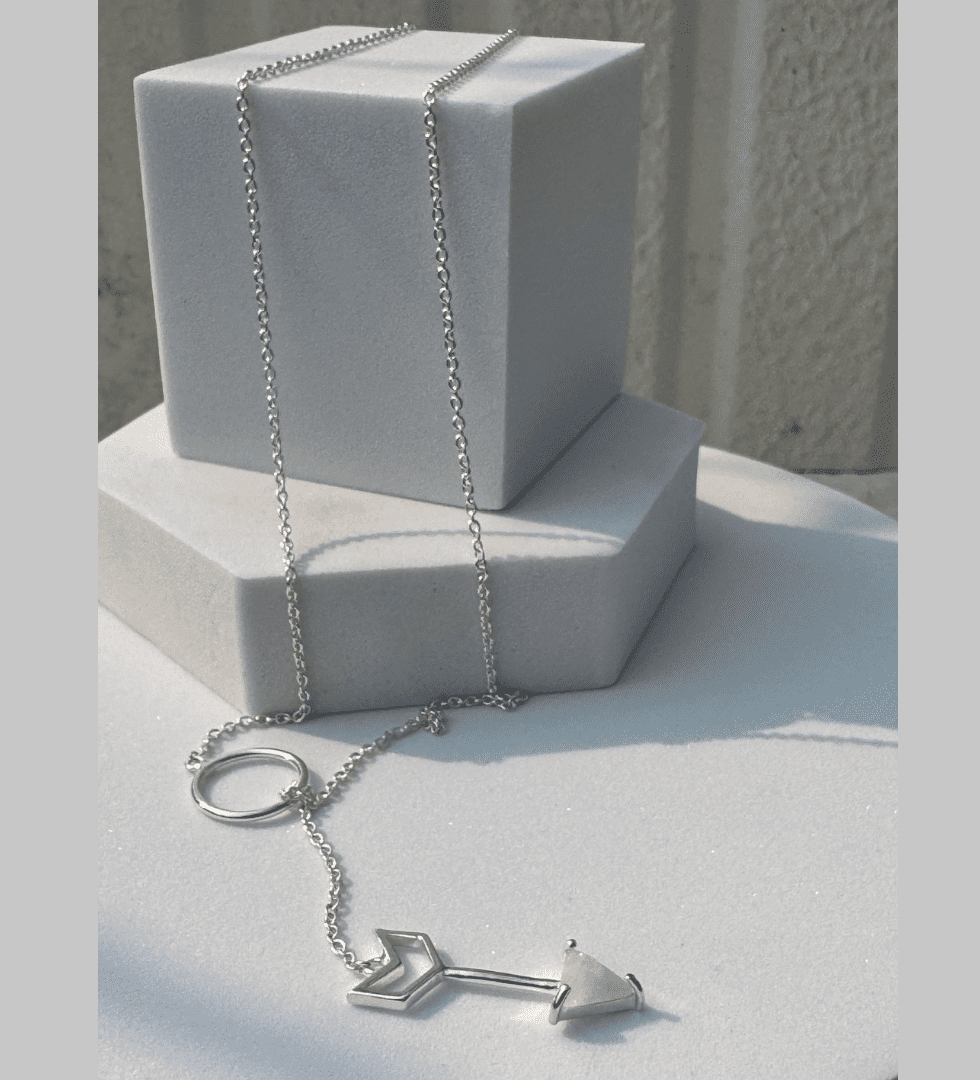 A delicate fusion of elegance and symbolism, the Celeste Loop Moonstone Chain features a sleek circular loop leading into a refined arrow-inspired drop pendant. Finished with a soft, luminous moonstone, the piece carries the calm, intuitive energy of the moon. Designed in 92.5 sterling silver, it is lightweight, modern, and effortlessly sensual, perfect for deep necklines, evening silhouettes, and minimal everyday luxury.