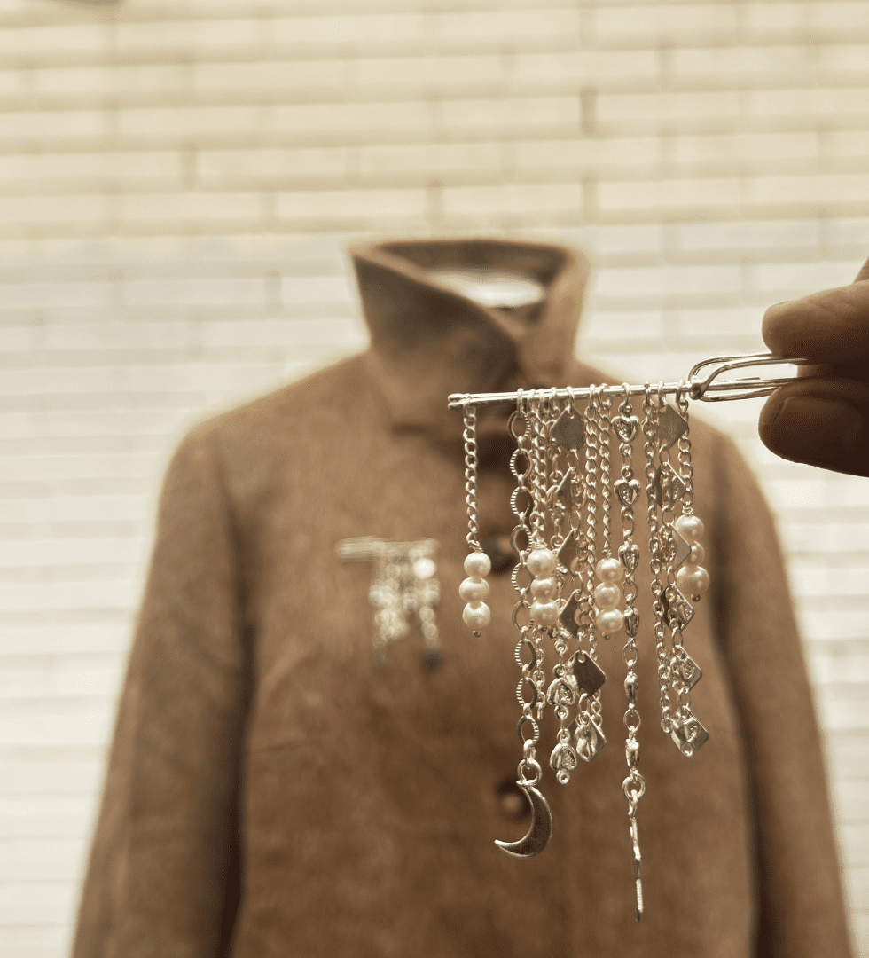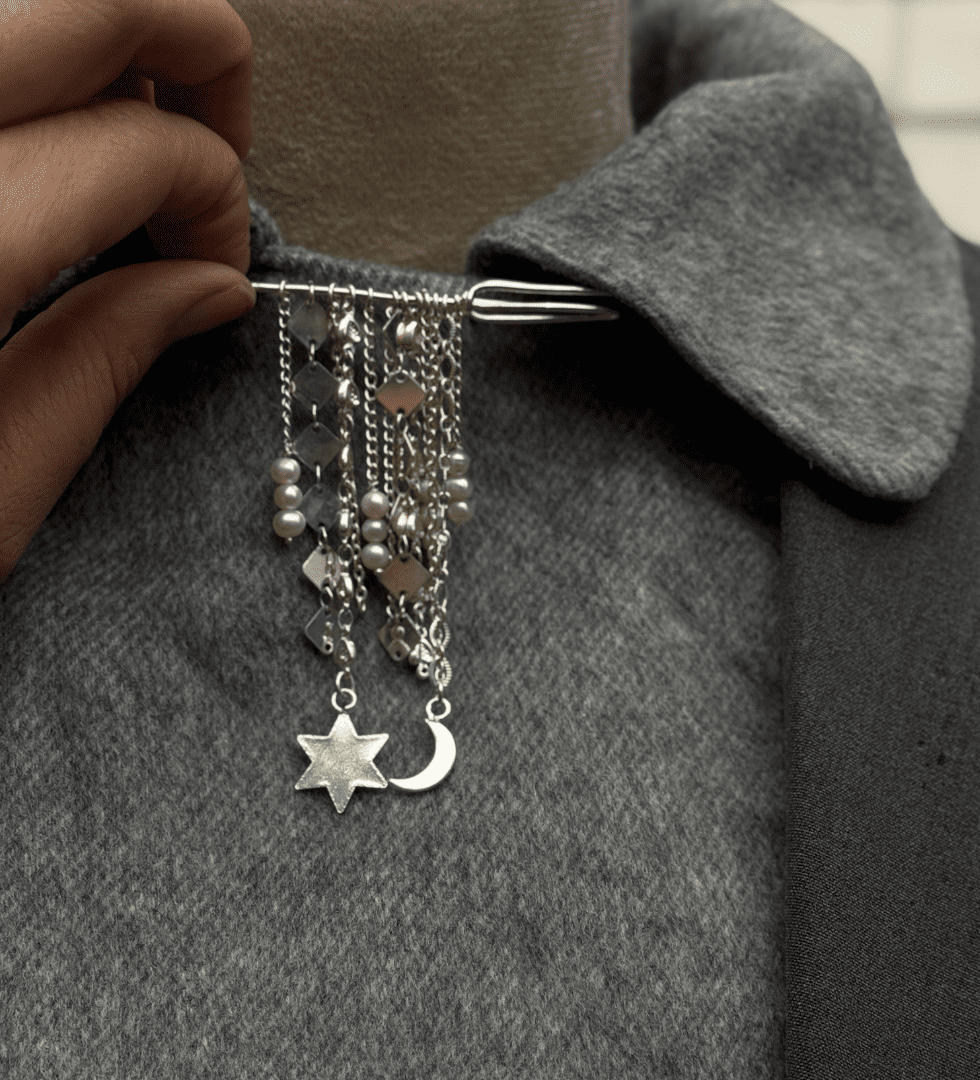 The Dreamweave Silver Talisman Pins embody a blend of delicate craftsmanship and symbolic elegance. Designed with artistic interlacing patterns, this pin carries a timeless charm that elevates any ensemble with subtle mystique. Each curve and texture is thoughtfully sculpted to create a talismanic accessory that feels both protective and ornamental. Whether worn as a saree pin, dupatta clip, or styled on bags and scarves, it adds an effortless touch of individuality and grace. A statement in its own quiet way, this piece celebrates the art of silverwork with a modern yet soulful aesthetic.