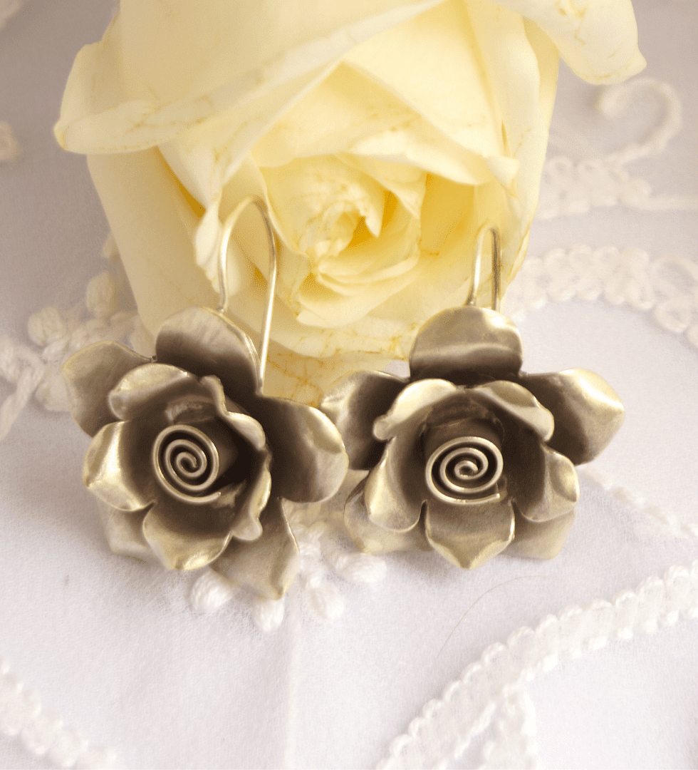 - Rosette Drop Silver Earrings (Pair): 12 gms