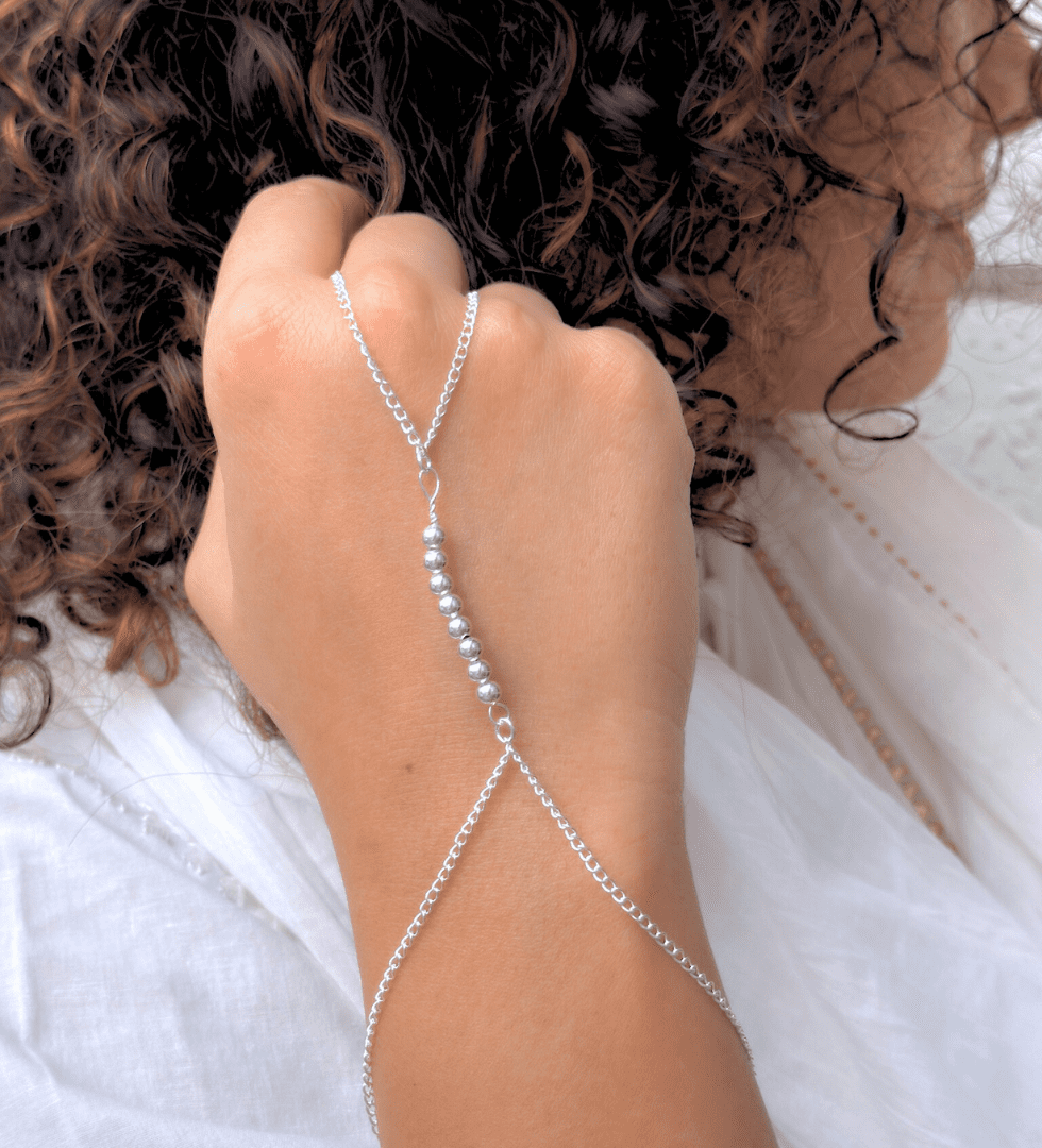 The Graceful Silver Path Ornament is a refined and minimalist hand accessory designed to bring effortless elegance to your look. Crafted with a sleek silver chain that flows smoothly from wrist to finger, it creates a clean, elongated silhouette that complements both traditional and contemporary styles. Lightweight and beautifully structured, this ornament adds a subtle shimmer to your hands, making it perfect for everyday charm as well as special occasions. Its versatile design ensures it blends seamlessly with any jewellery collection while offering a touch of poised sophistication.