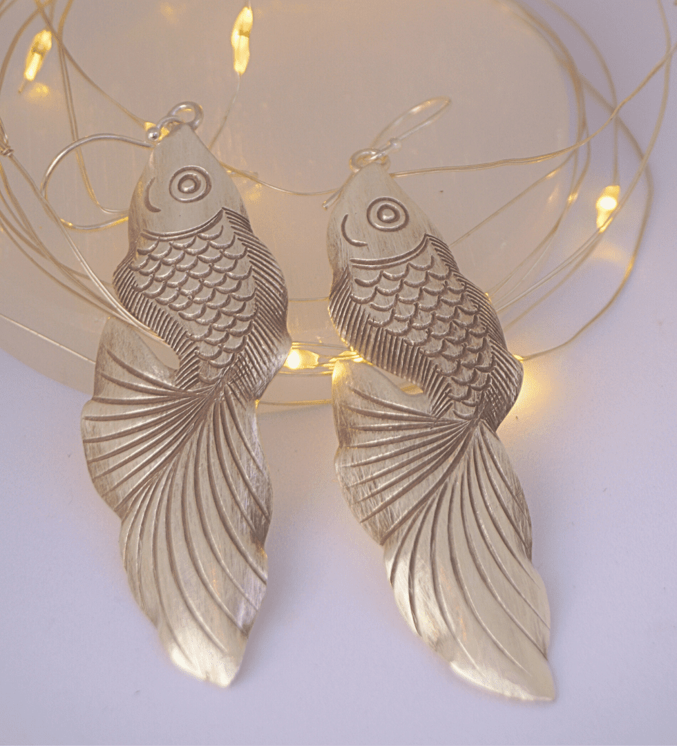 The Luna Koi Magical Silver Earrings draw inspiration from the graceful movement of koi fish under moonlit waters a symbol of perseverance, harmony, and beauty. Handcrafted in 92.5 sterling silver, each earring reflects a fluid, sculptural form that captures light with every turn. The polished surface and organic curves evoke a sense of serenity and strength, embodying The Parah Studio’s philosophy of timeless craftsmanship and natural elegance. These earrings are an artistic statement, refined, fluid, and enchanting.