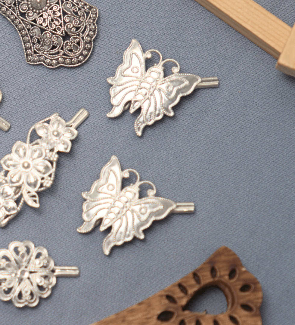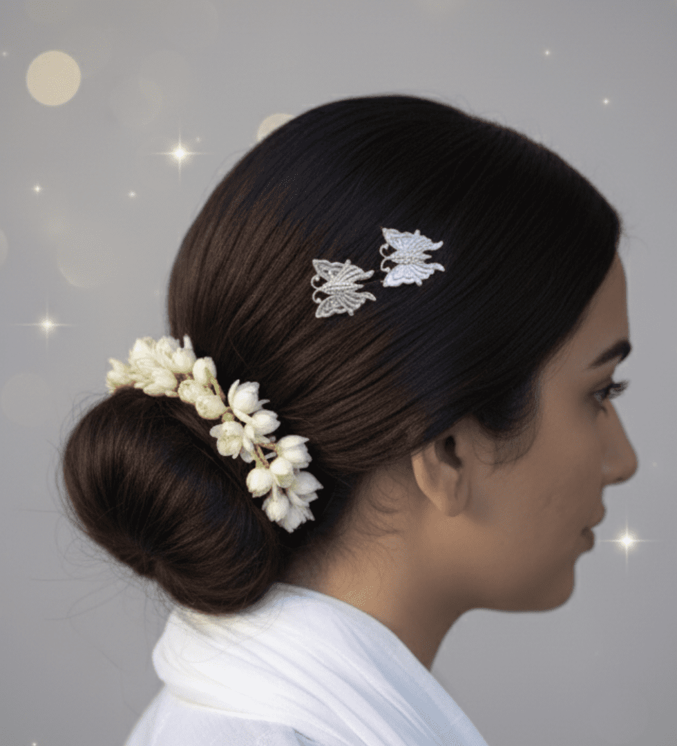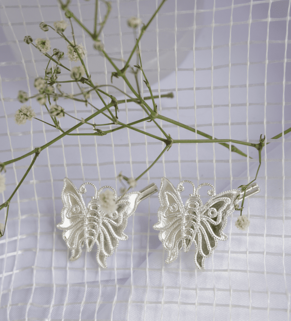 The Moonlit Silver Wings Hair Pin captures the ethereal beauty of a moonlit night and the freedom of flight. Handcrafted in 92.5 sterling silver, it features delicately sculpted wing-like forms that evoke lightness, strength, and grace. With its luminous polish and refined craftsmanship, this piece reflects The Parah Studio’s vision of merging nature’s poetry with modern design. Elegant and versatile, it adds a celestial charm to every hairstyle — from festive elegance to everyday radiance.