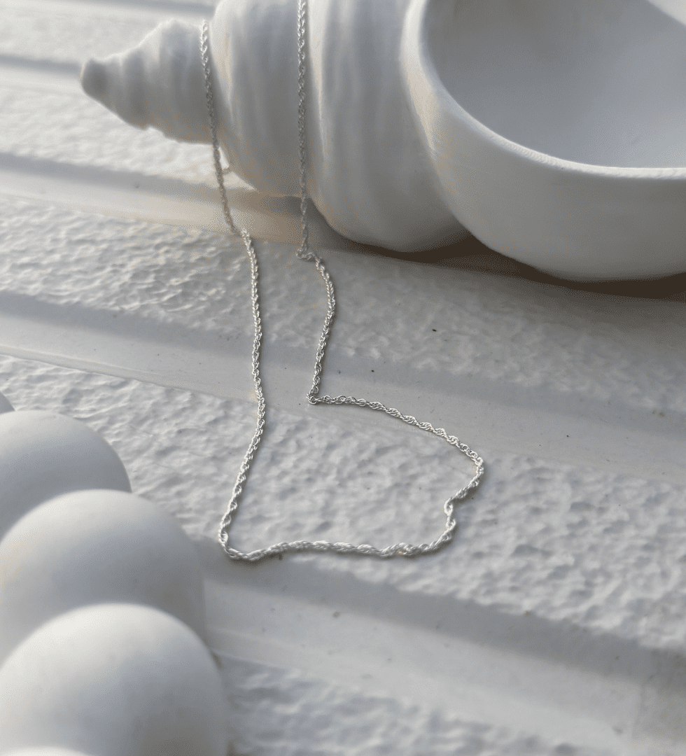 The Moonthread Fine Link Chain is a delicate yet captivating everyday essential crafted in genuine 92.5 sterling silver. Its ultra-light links create a soft, fluid shimmer that feels almost weightless on the skin. Designed to mirror the subtle elegance of moonlit threads, this chain adds a refined, minimal glow to any look while maintaining timeless versatility. Whether layered or worn solo, it elevates your style with quiet luxury.