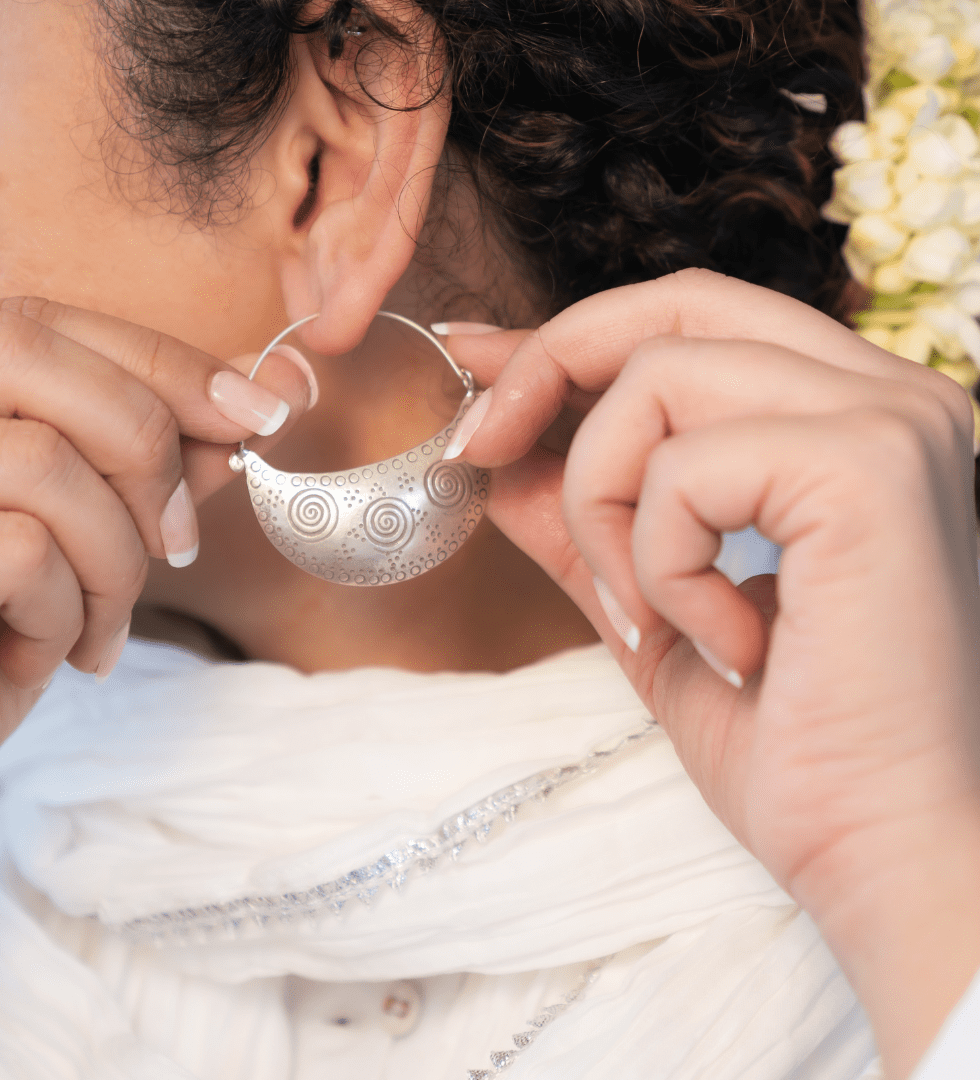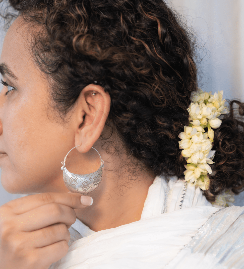 The Tārāvat Silver Earrings are an ode to celestial beauty and timeless craftsmanship. Inspired by the radiance of starlight, each curve is sculpted in 92.5 sterling silver to capture luminous elegance in a form both graceful and enduring. The design evokes balance , light meeting form, heritage meeting modernity. Handcrafted by skilled artisans, the earrings reflect The Parah Studio’s devotion to slow design, mindful artistry, and refined Indian aesthetics.