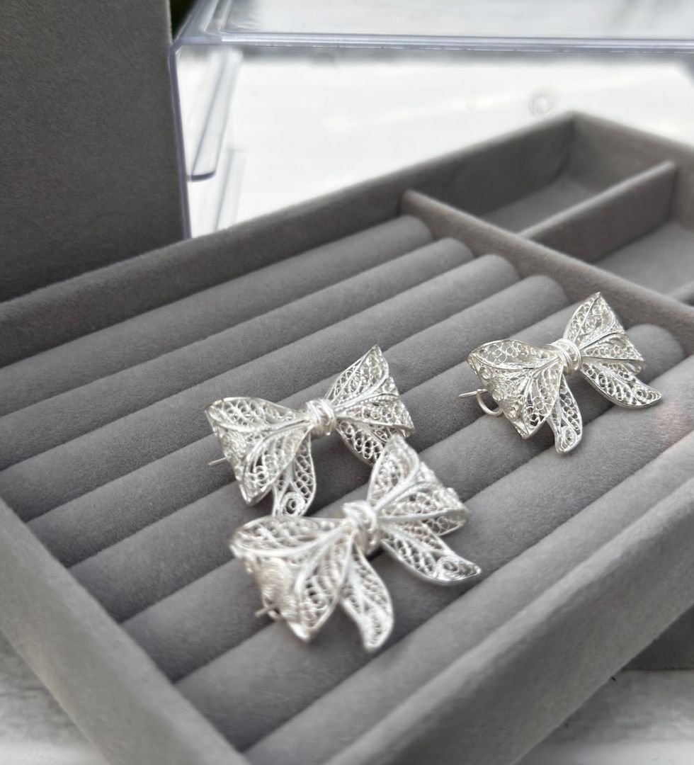 • Crafted in pure silver, Classic bow silhouette with vintage-inspired detailing